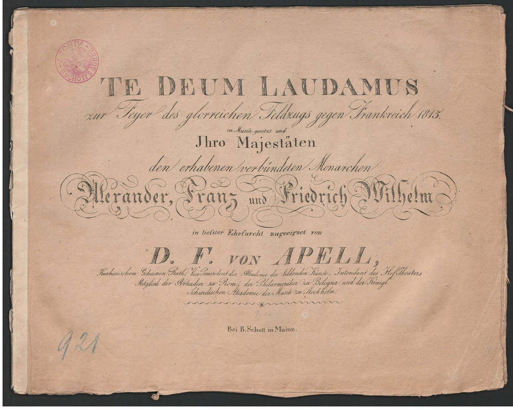 | Alternative. Title | Te Deum Laudamus zur Feyer des glorreichen Feldzugs gegen Frankreich 1815 |