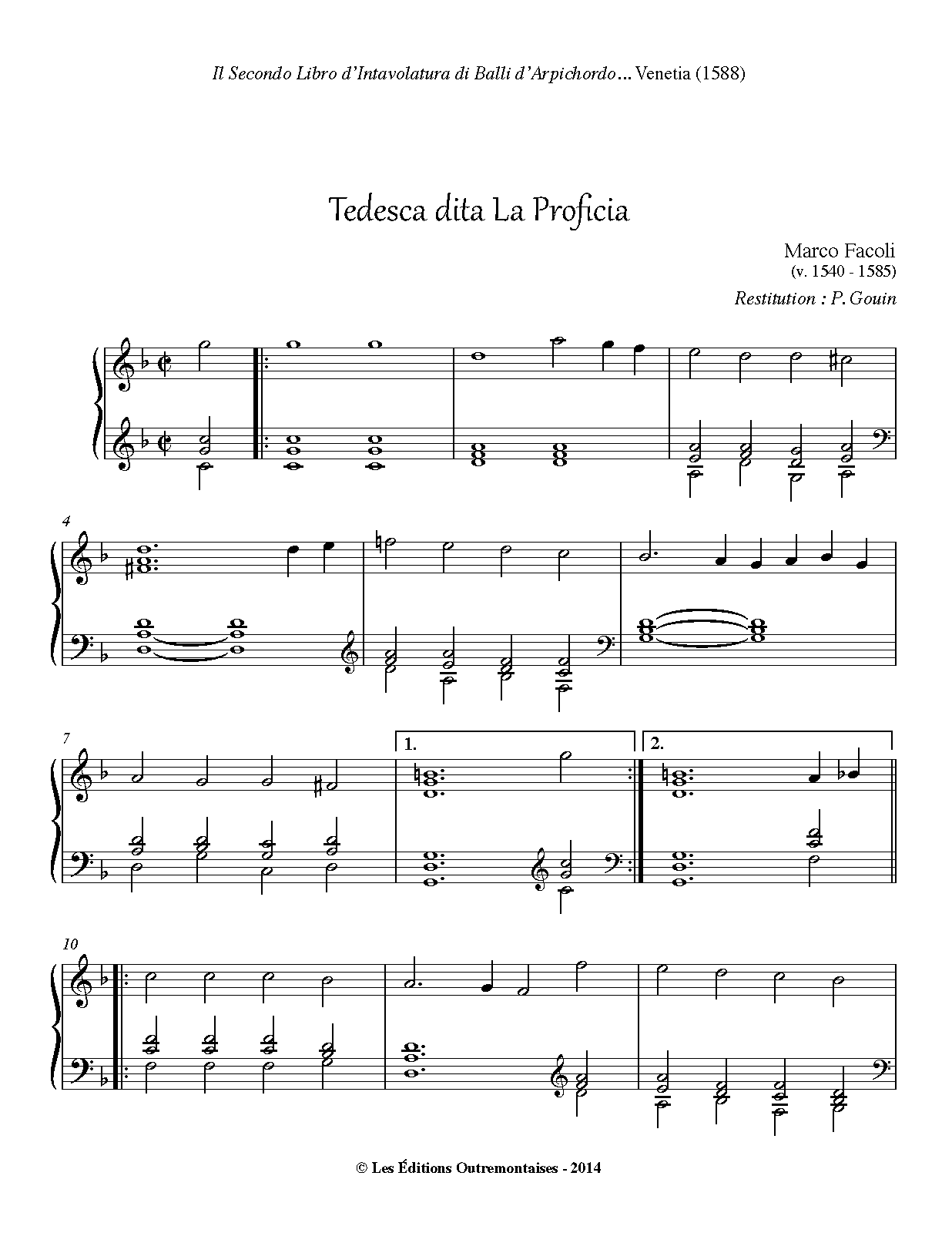 | First Publication | 1588 in Il Secondo Libro d’Intavolatura di Balli d’Arpichordo |