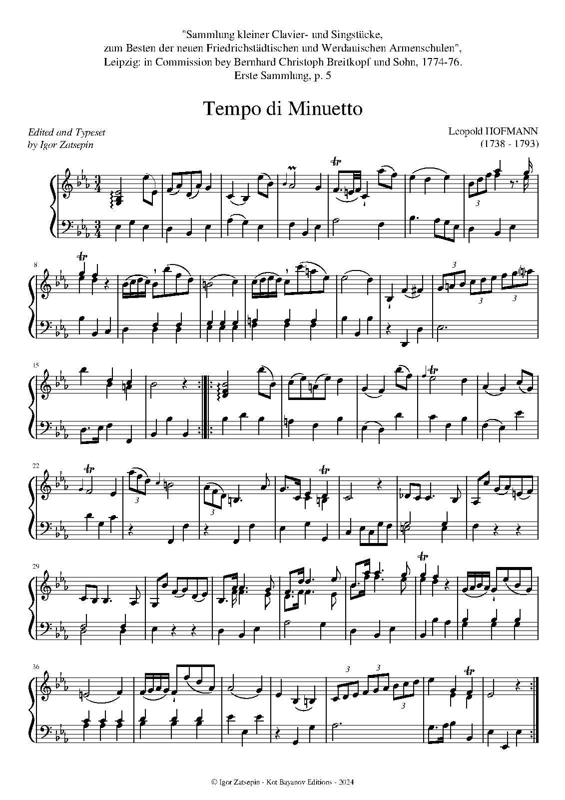 | Extra Information | "Sammlung kleiner Clavier- und Singstücke...", Breitkopf und Sohn, 1774-76 |