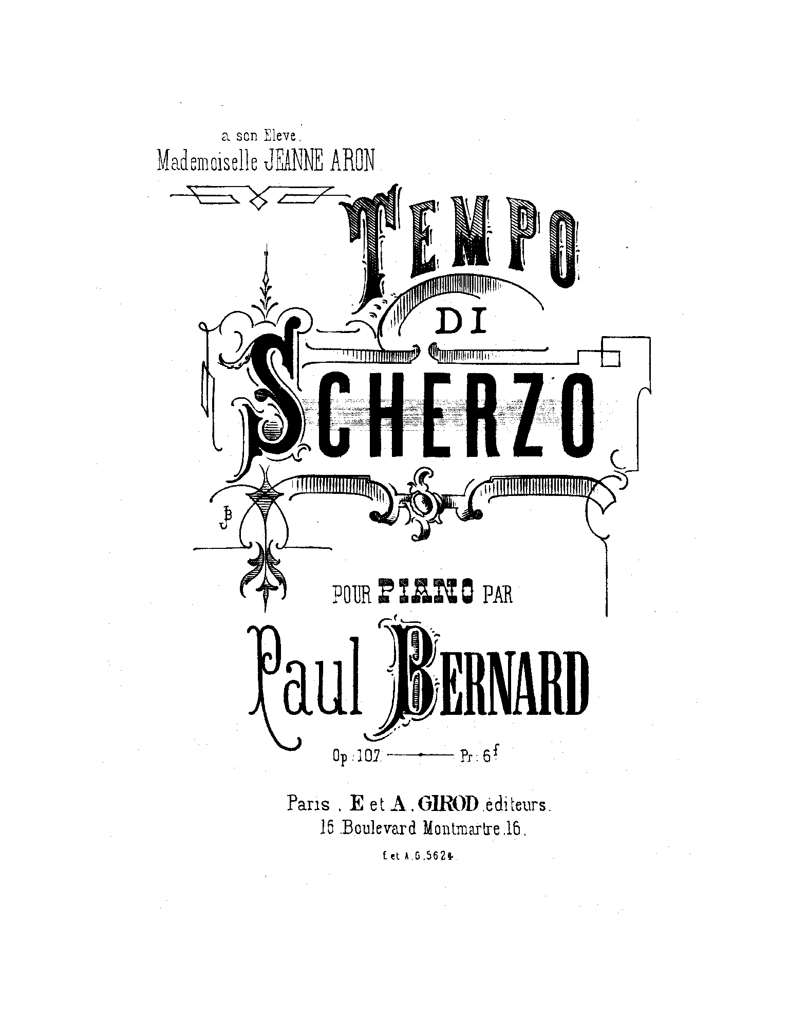 | Dedication | à son élève Mademoiselle Jeanne Aron |