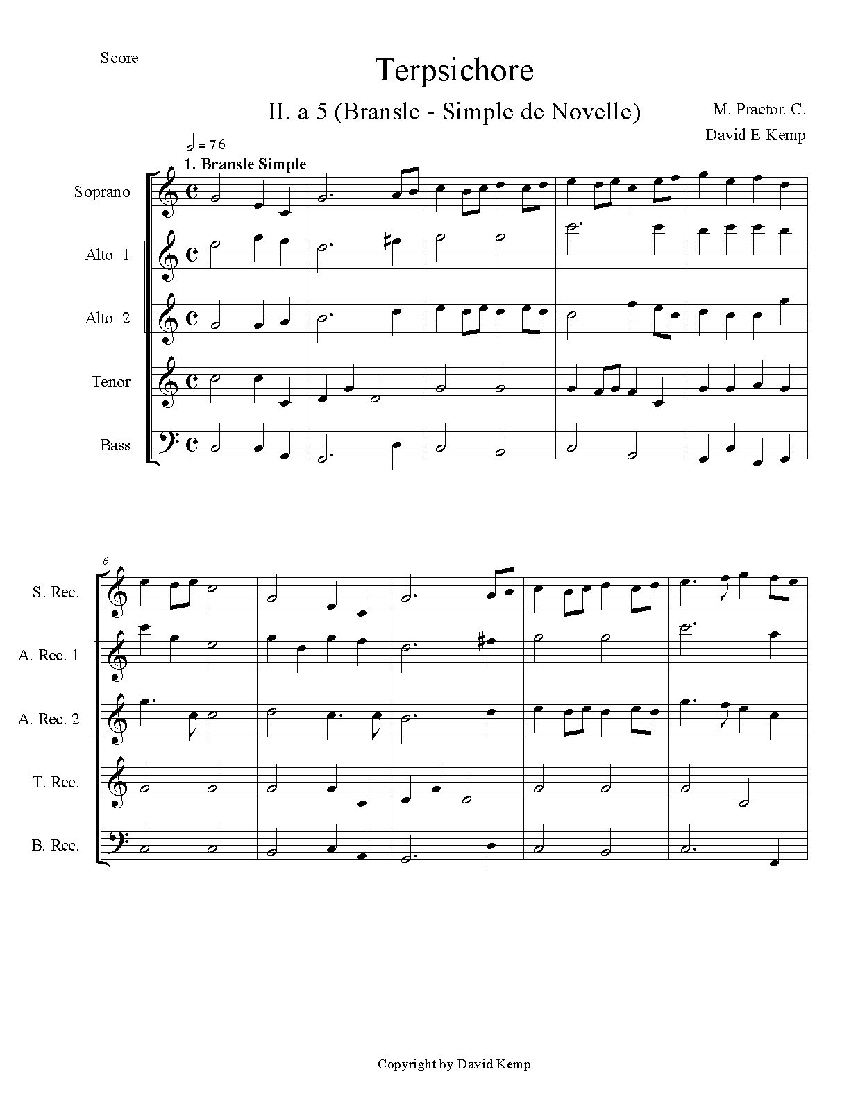 Misc. Notes A suite of dances for 1 Soprano 2 Altos 1 Tenor 1 Bass