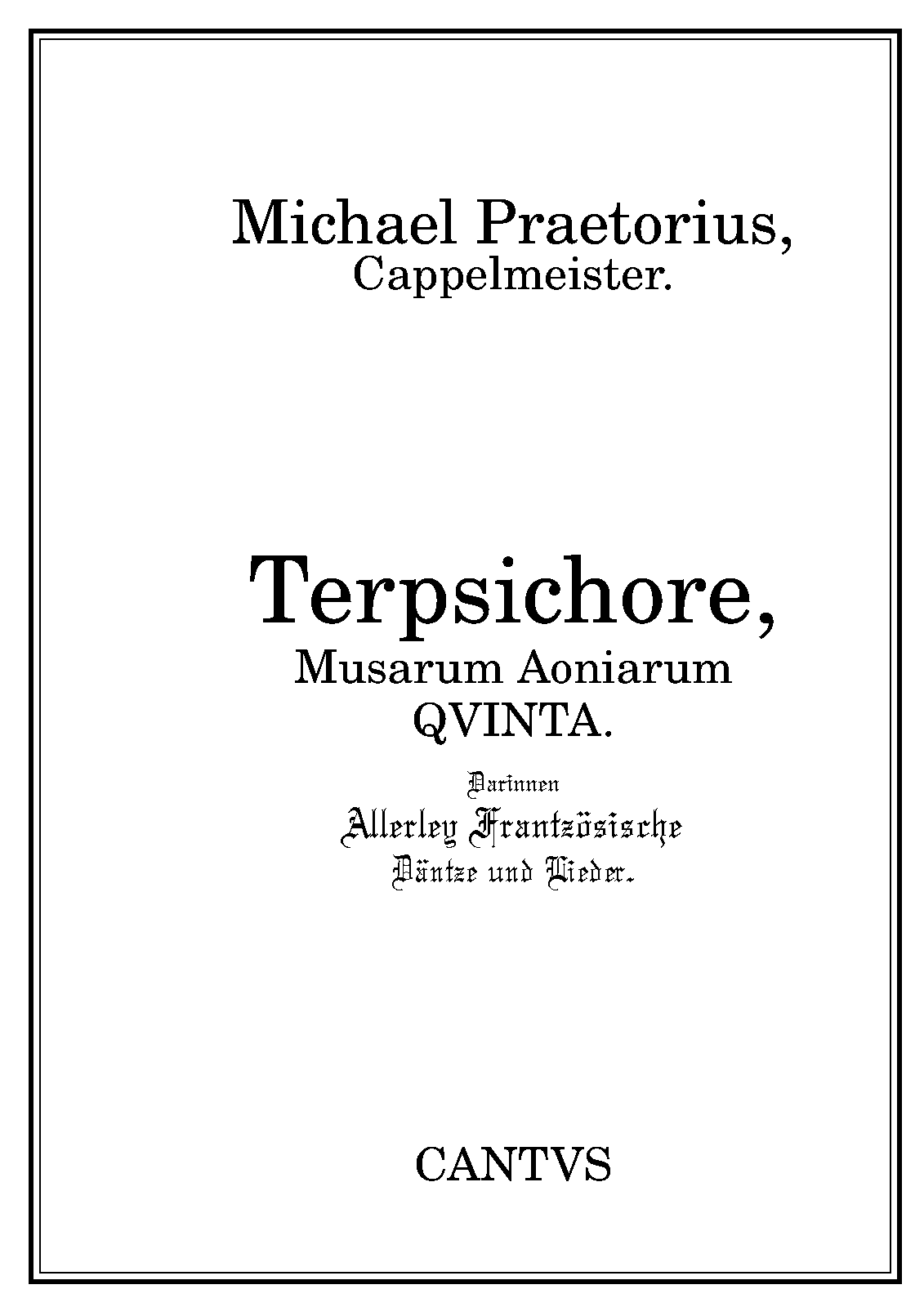 Terpsichore, musarum aoniarum quinta. Darinnen allerley französische Däntze und Lieder... mit 4. 5. und 6. Stimmen. Wie selbige von den französischen Dantzmeistern in Franckreich gespielet und vor fürstlichen Taffeln auch sonsten in Convivüs zur recreation und Ergötzung gantz wol gebraucht werden können...