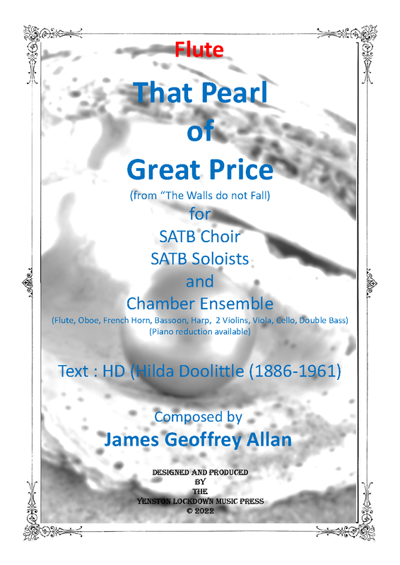 | Extra Information | Piano or Chamber Ensemble versions available. A strange poem by H.D. (Hilda Doolittle) written during WW2 and to be found in her book "The Walls do not Fall". It is all about resilience in the face of adversity. I have set it for SATB choir, SATB soloists accompanied by chamber ensemble accompaniment ( Flute, Oboe, French Horn, Bassoon, Harp, String Quartet and Double Bass.) A piano rehearsal / performance version is also available. |