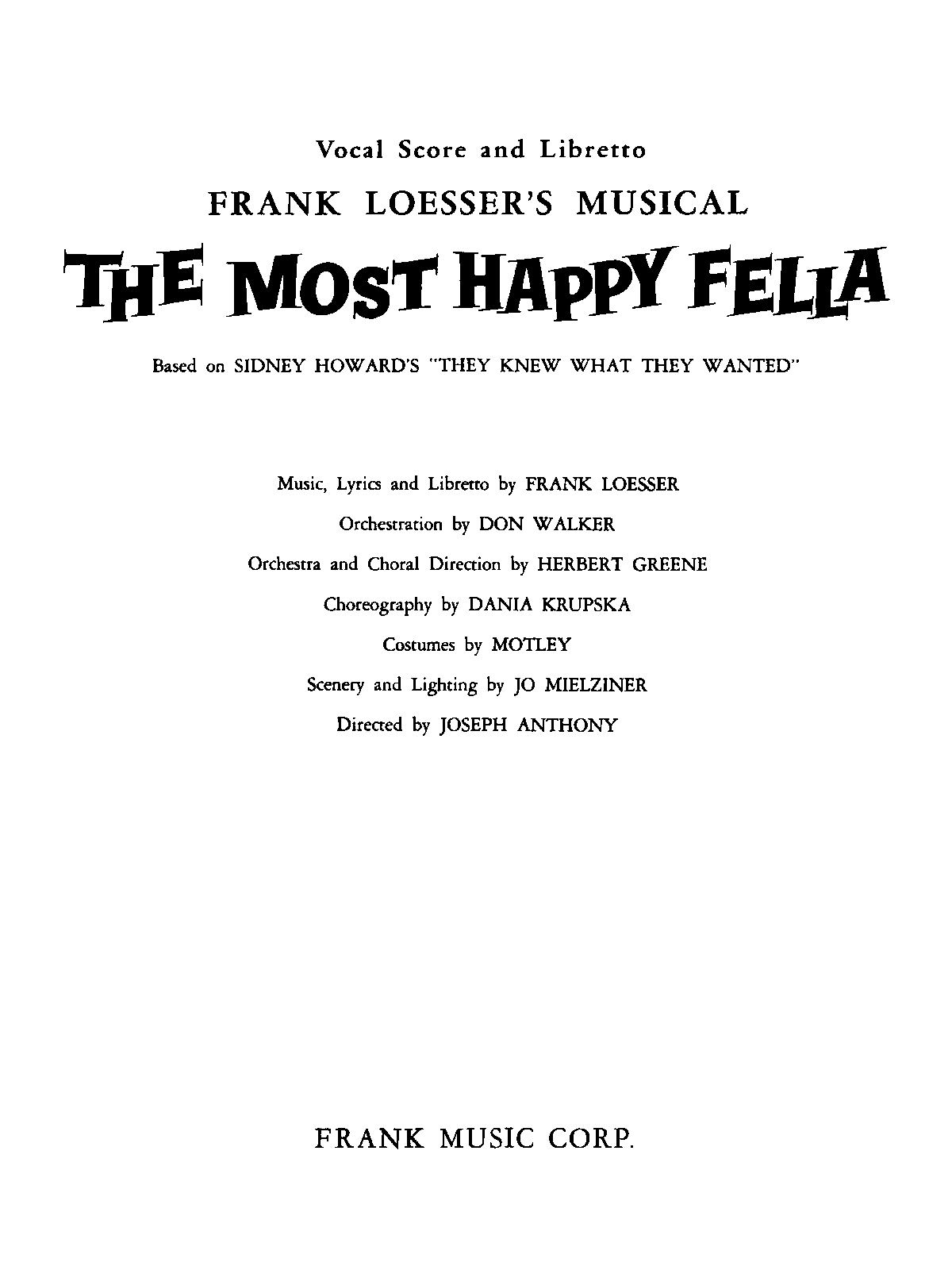 Based on They Knew What They Wanted, by Sidney Howard. DO NOT post the orchestral score or parts, as the orchestration done by Don Walker is still under copyright globally.