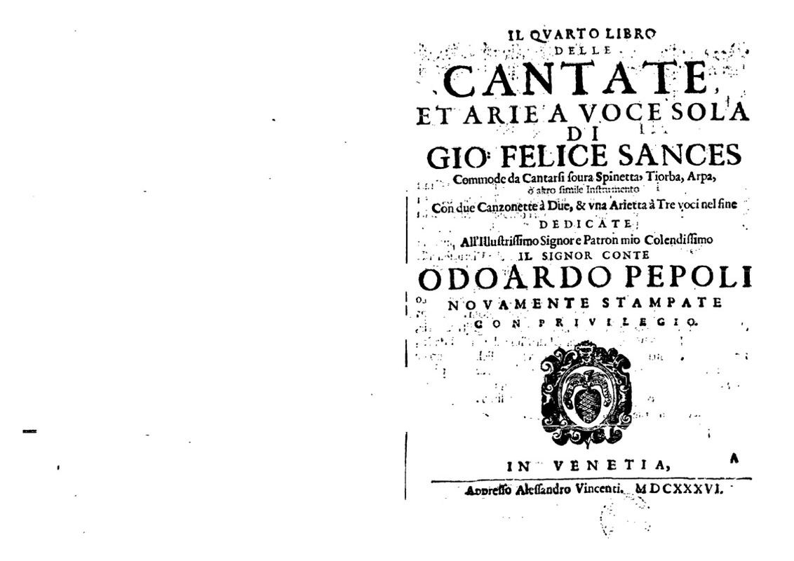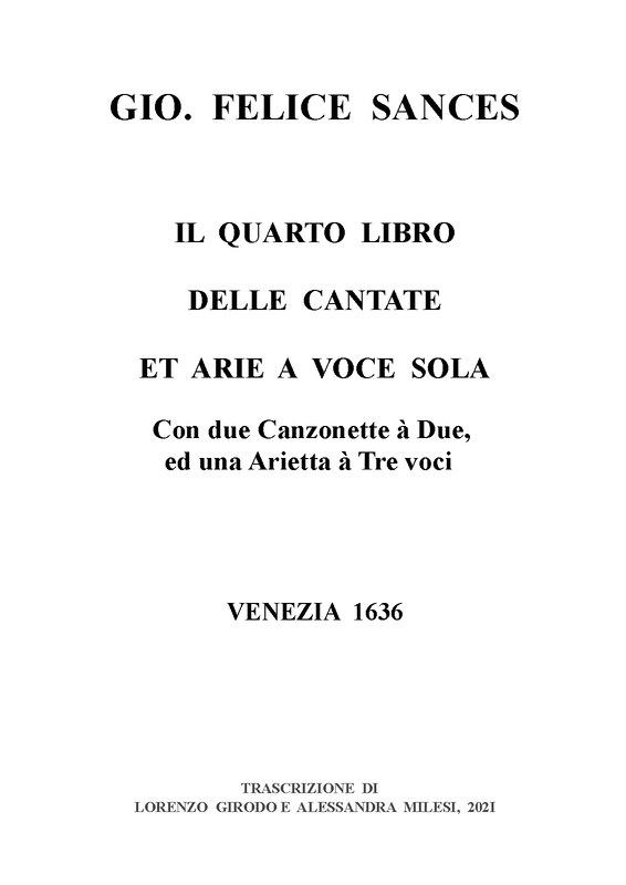 | Alternative. Title | Il quarto libro delle cantate, et arie a voce sola [...] commode da cantarsi soura spinetta, tiorba, arpa, o altro simile instrumento, con duo canzonette à due , & una arietta à tre voci nel fine |