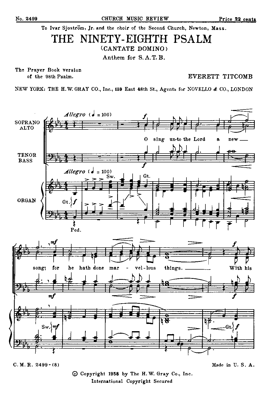 | Dedication | To Ivor Sjoström, Jr. and the choir of the Second Church, Newton Mass. |