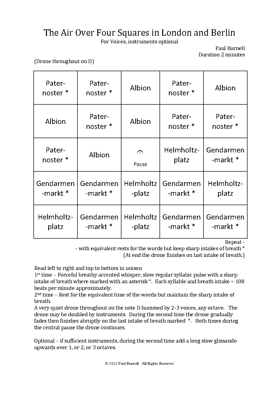 | Extra Information | A recorded version is included on Paul Burnell's 2023 album 'So (Not) To Speak'. |