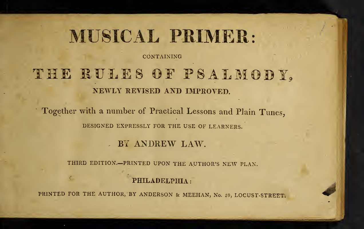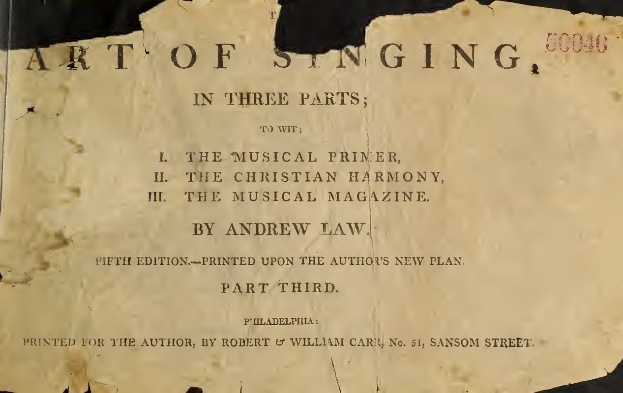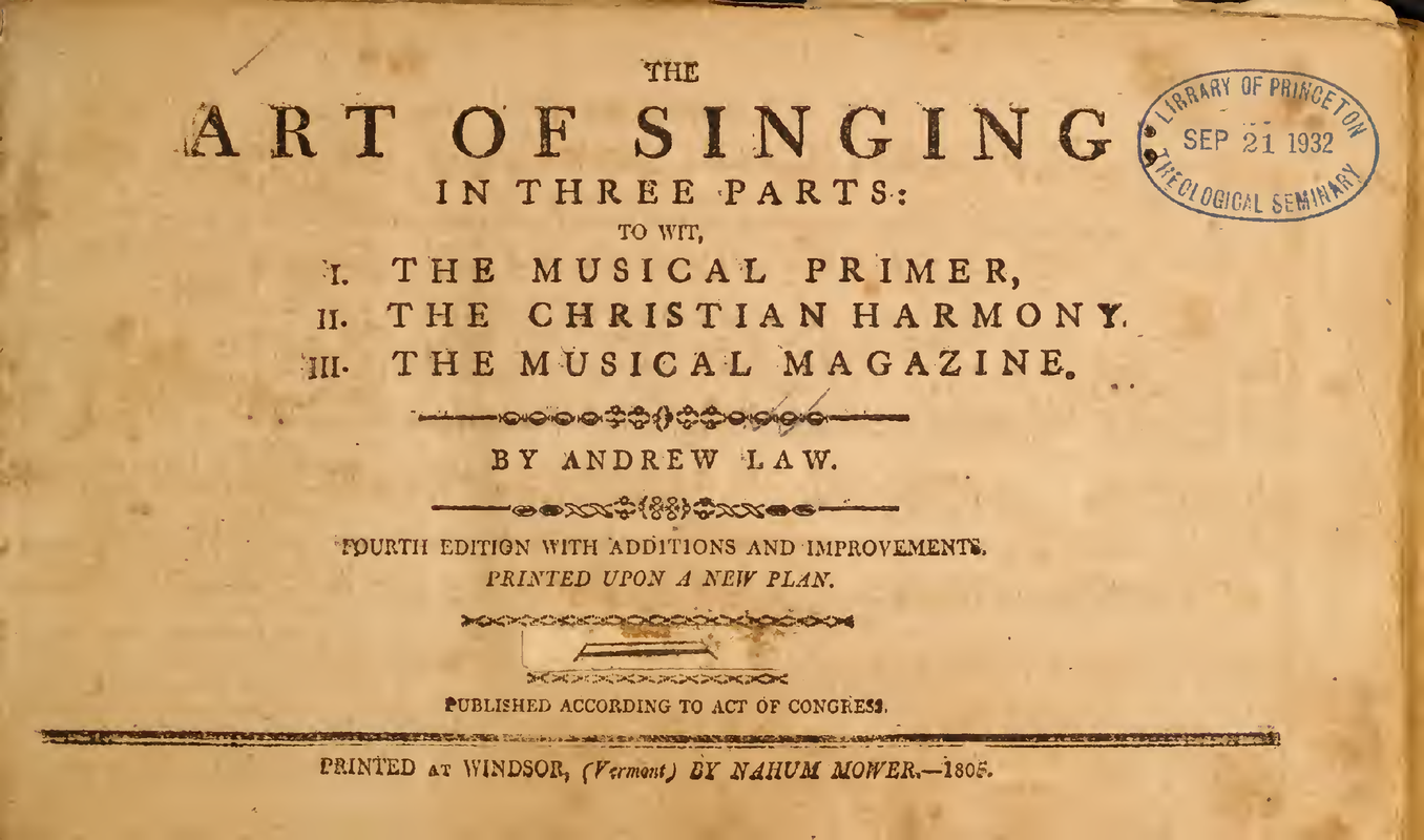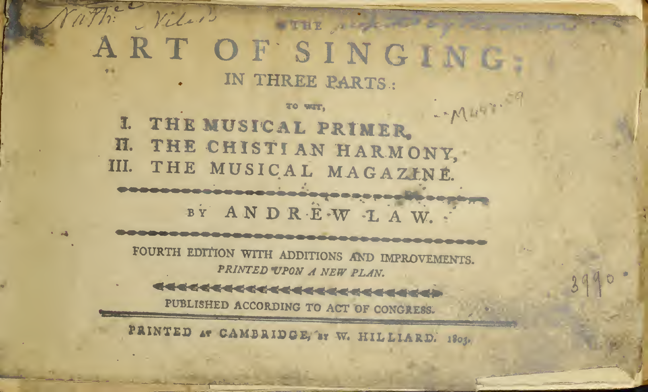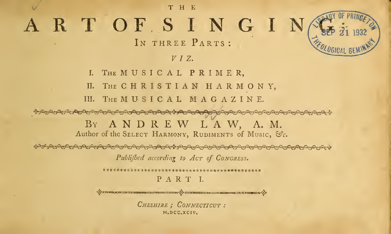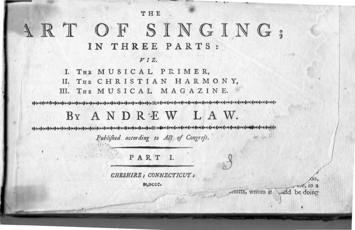 The Art of Singing; In three Parts: viz. I. The Musical Primer, II. The Christian Harmony, III. The Musical Magazine. By Andrew Law, A. M. Author of the Select Harmony, Rudiments of Music, &c.