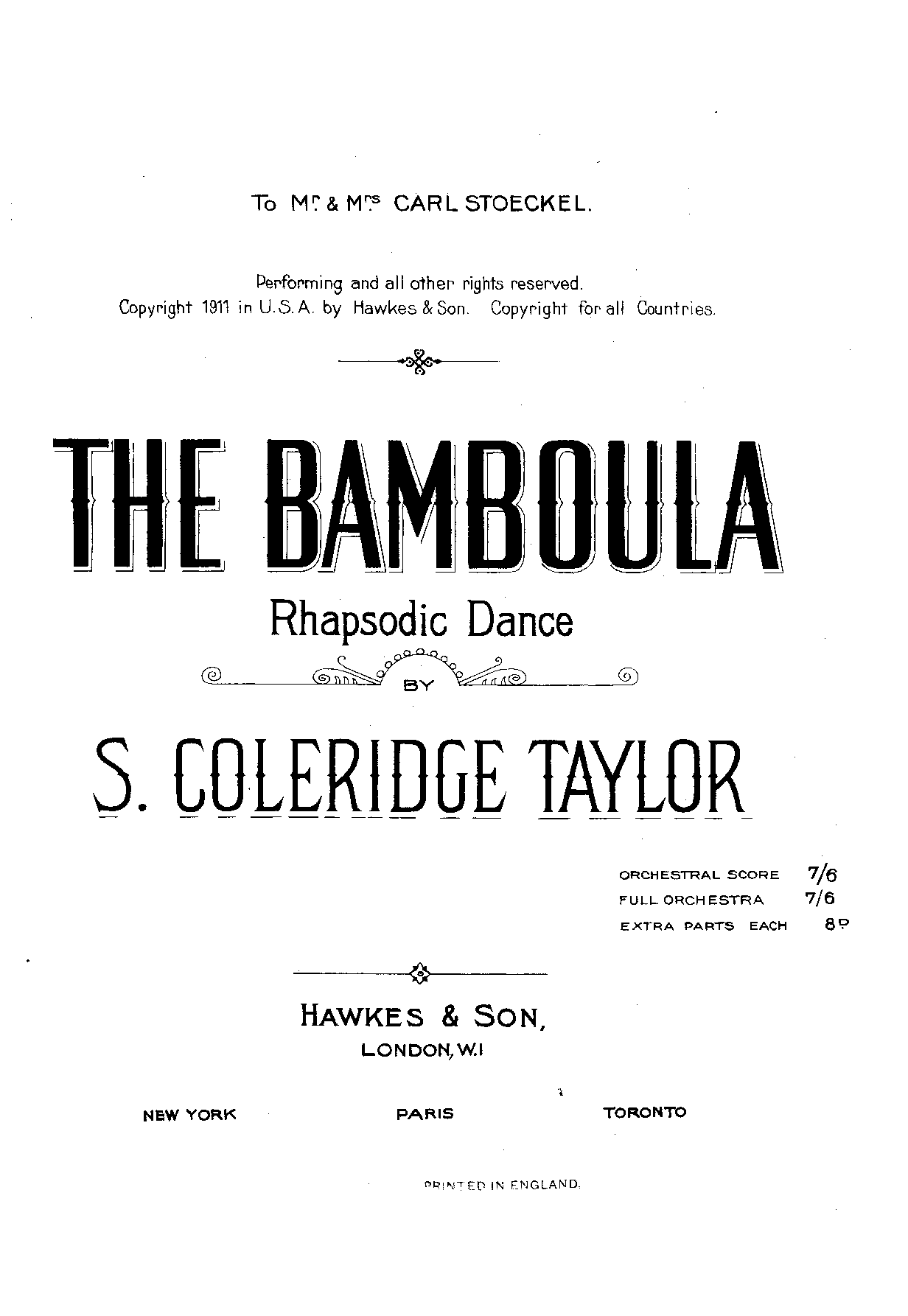 | Alternative. Title | The Bamboula, Rhapsodic Dance |