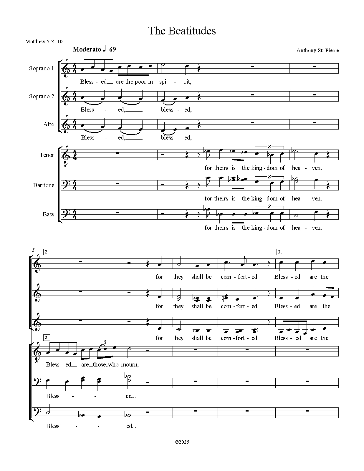 | Extra Information | Each Beatitude begins with the plainchant tune for 'Alleluia: cæli enarrant gloriam Dei' (Ps.19:1). This tune has also been associated with the offertory sentence 'Blessed is he that considereth the poor' (Ps.41:1) |