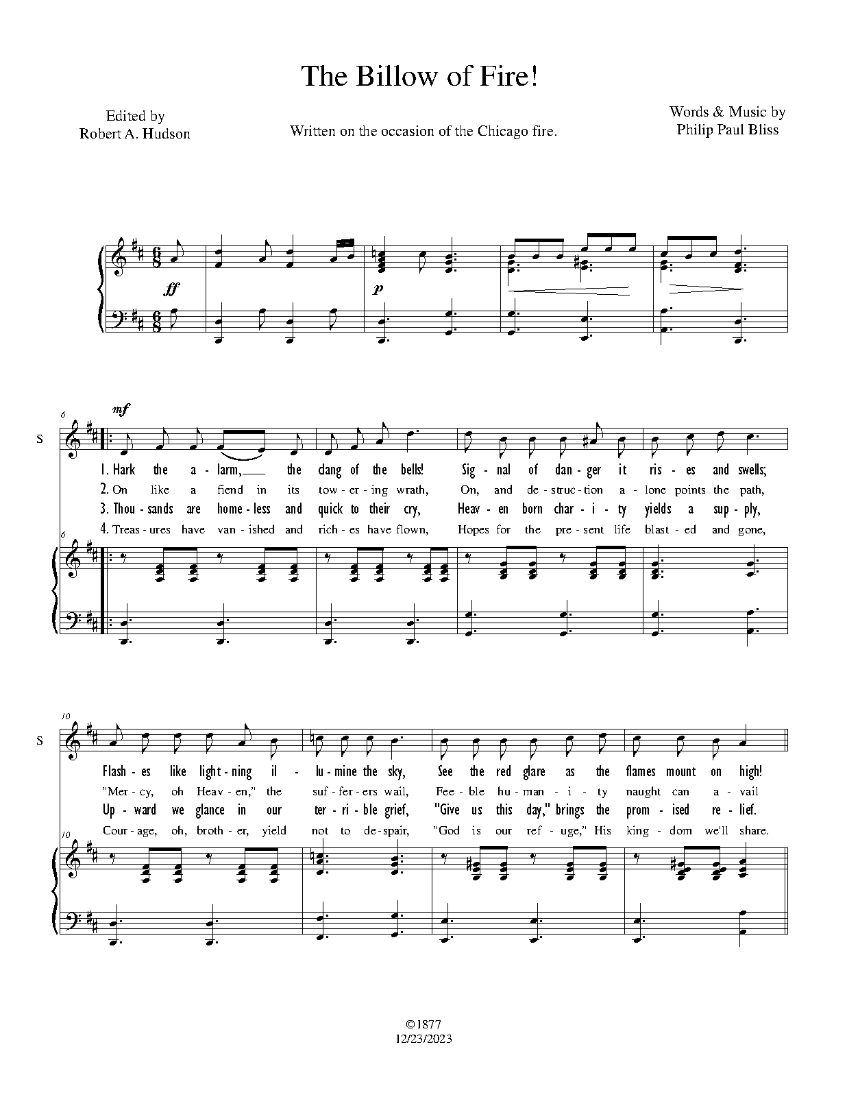 | Extra Information | Written on the occasion of the Chicago fire. Published posthumously |