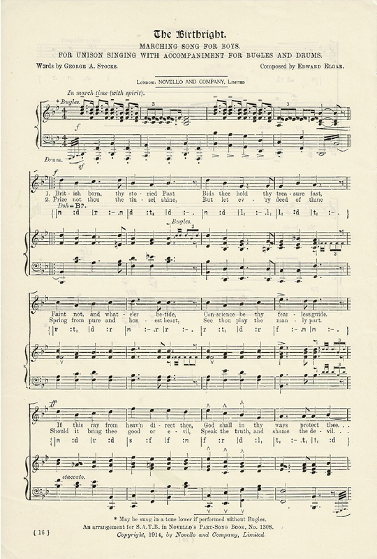 | Instrumentation | Boys' voices in unison with accompaniment for bugles and drums, with piano accompaniment, or voices SATB |