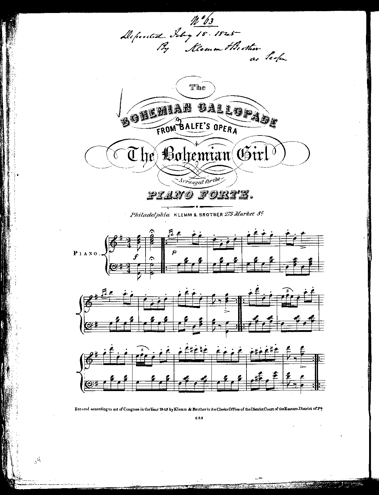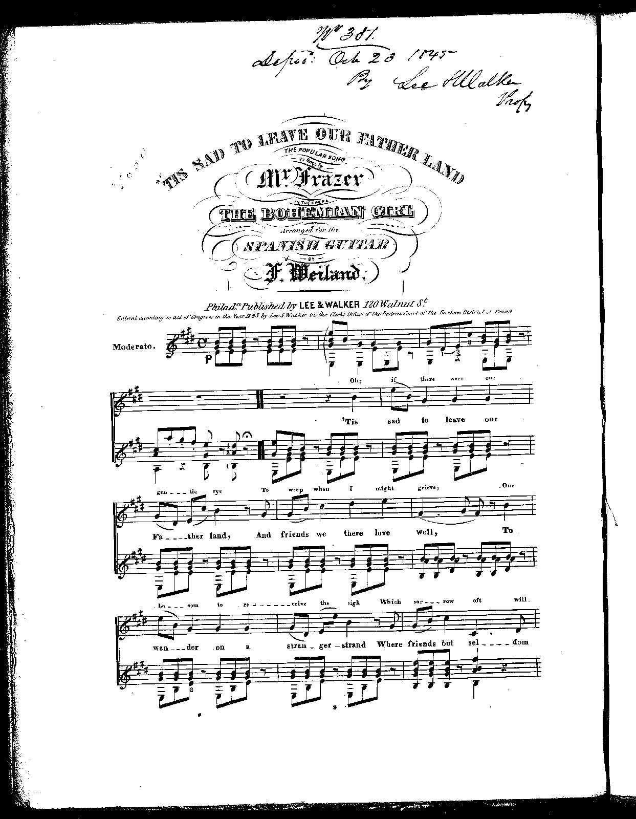 4 horns, 2 cornets, 2 trombones, ophicleide timpani, side drum, bass drum, 2 tambourines, cymbals, strings