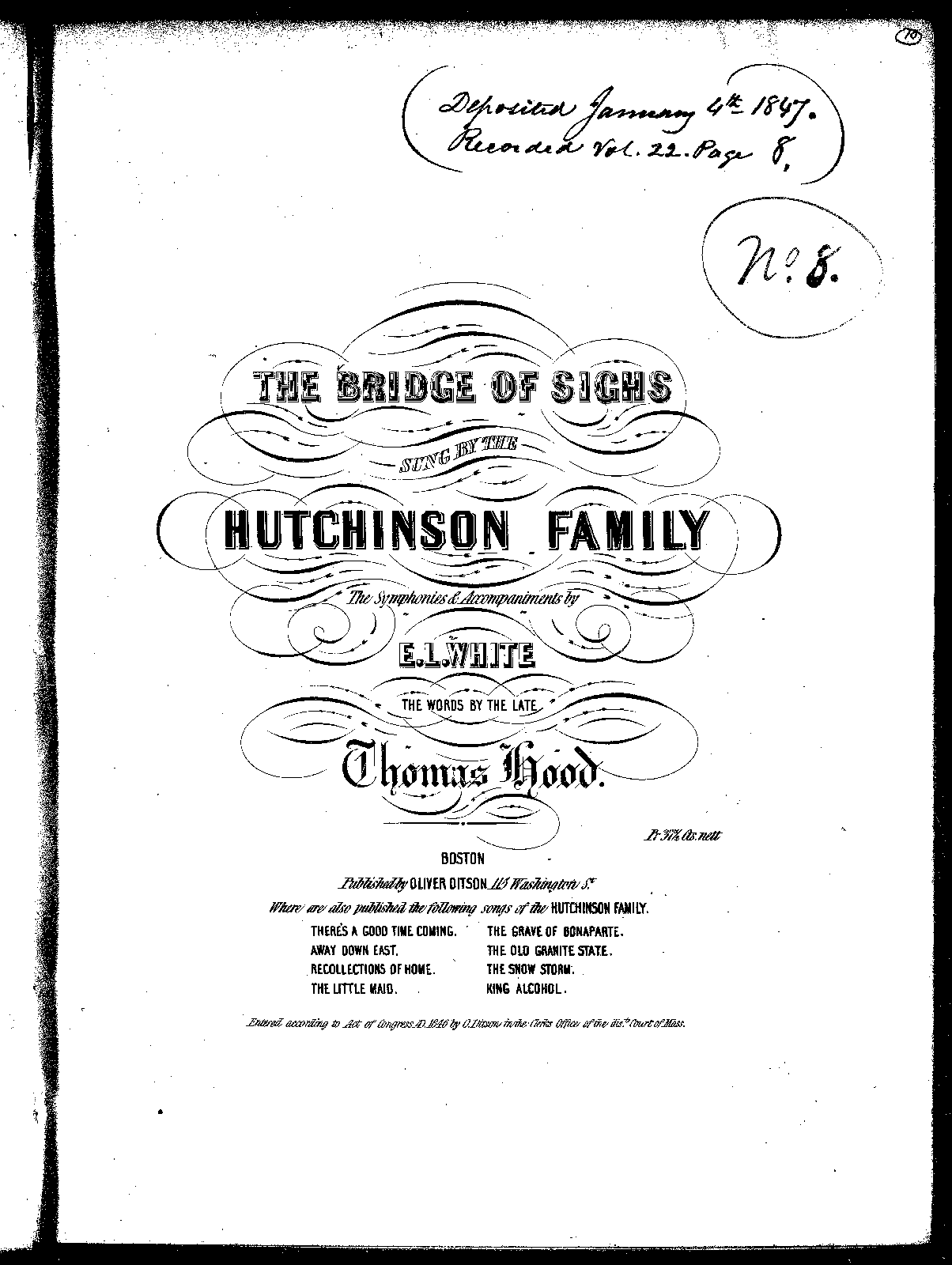"The Symphonies and Accompaniments by E. L. White; The Words by the late Thomas Hood."
