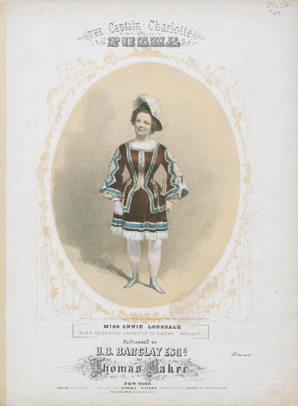Title page pictures Miss Annie Lonsdale in her celebrated character of Captain Charlotte.