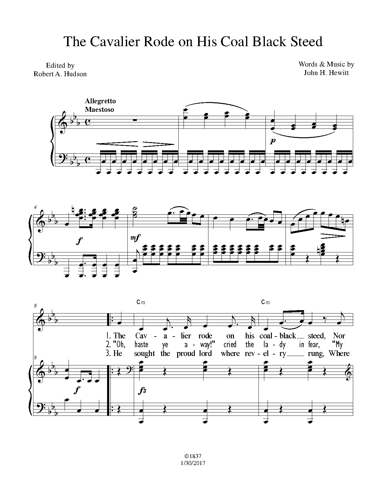 | Work Title | The Cavalier Rode on His Coal Black Steed |