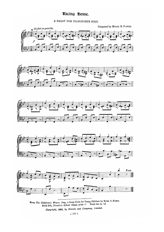 Includes a galop for piano solo 'Racing Home', later published separately.