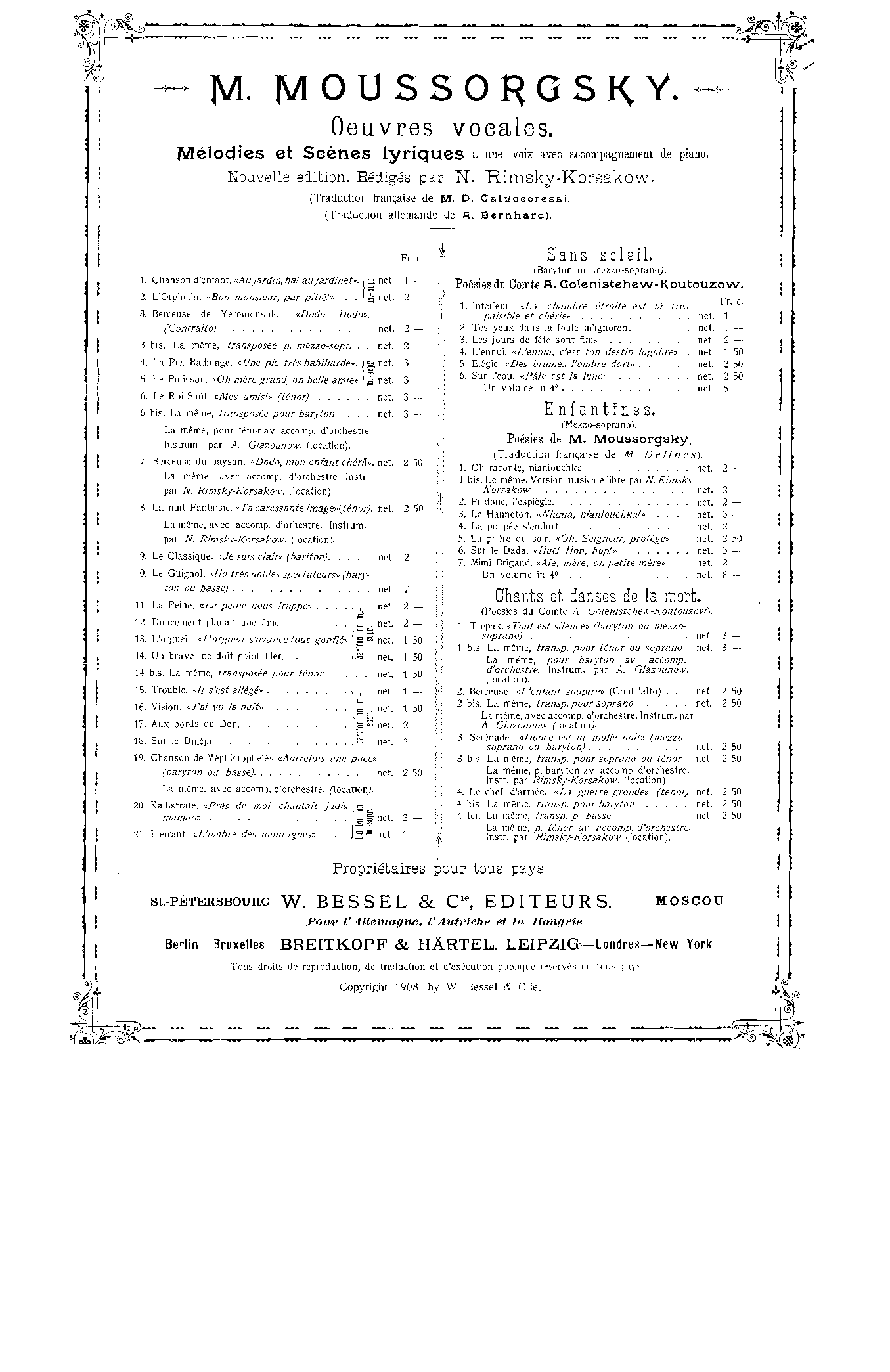 | Genre Categories | Songs; For voice, piano; For voices with keyboard; |