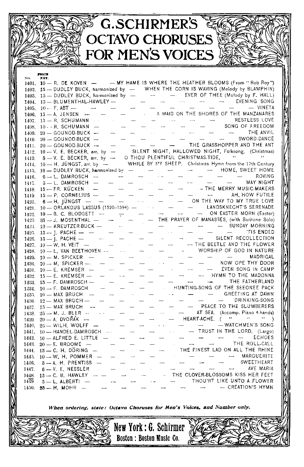 | Genre Categories | Songs; For male chorus; Scores featuring male chorus; |