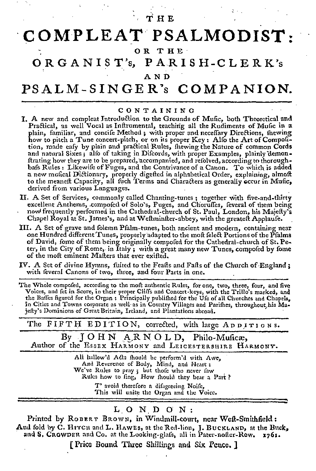 London: Robert Brown, 1761.