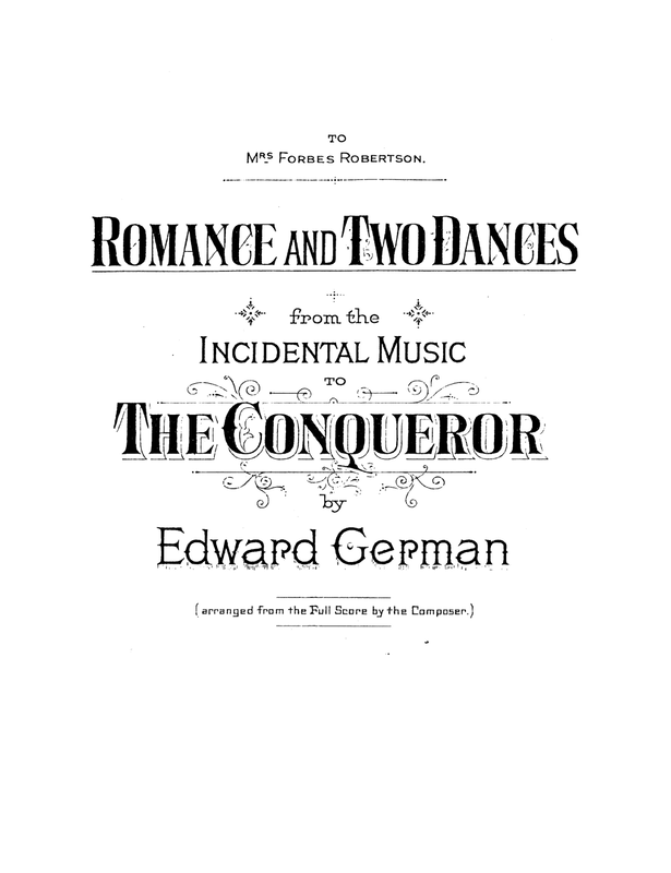 Music written for a 1905 production at the new Scala Theatre in London of a play by the Duchess of Sutherland (written under the pseudonym R.E. Fyffe). A piano arrangement by the composer of a romance and two dances from the incidental music was also published in 1905 and dedicated to Gertrude Forbes-Robinson.