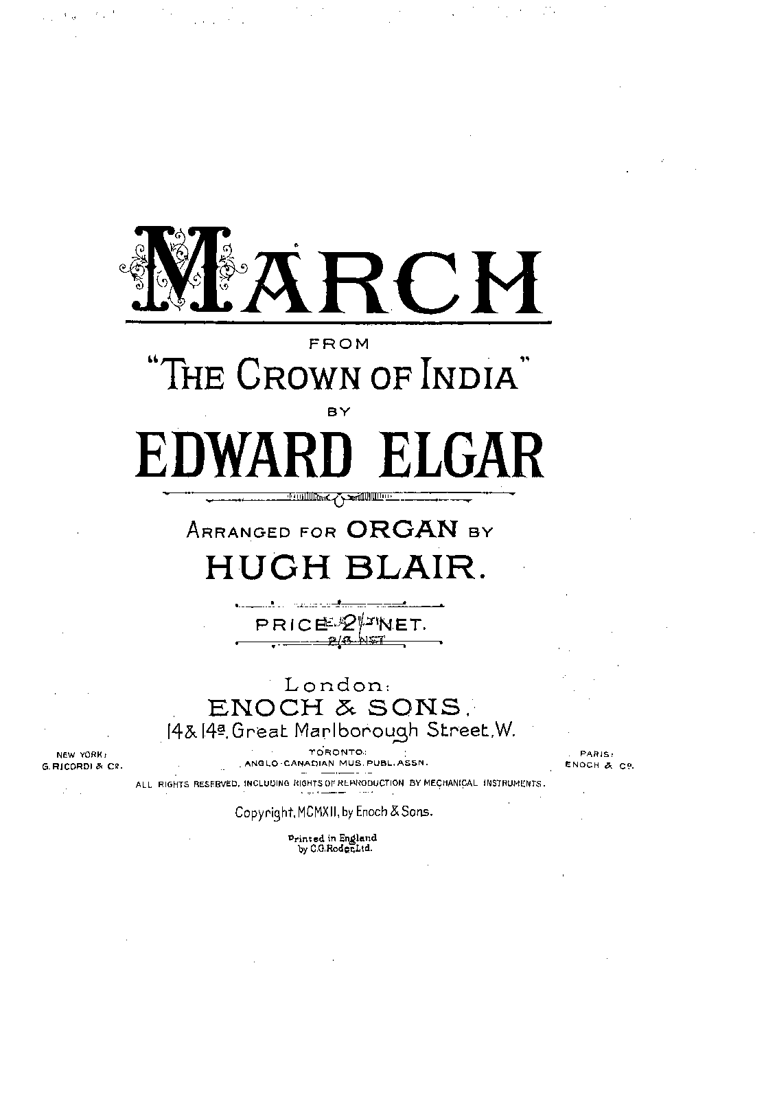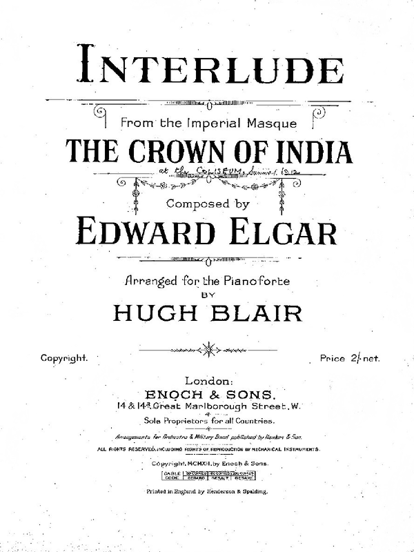 *The only score published for the complete masque was a vocal score arranged by Elgar's friend Hugh Blair. The orchestral parts were apparently destroyed in the 1960s. In 2007 the Elgar Society commissioned the composer Anthony Payne to complete the orchestration of the music, using Elgar's own orchestrations of the movements used in the suite.