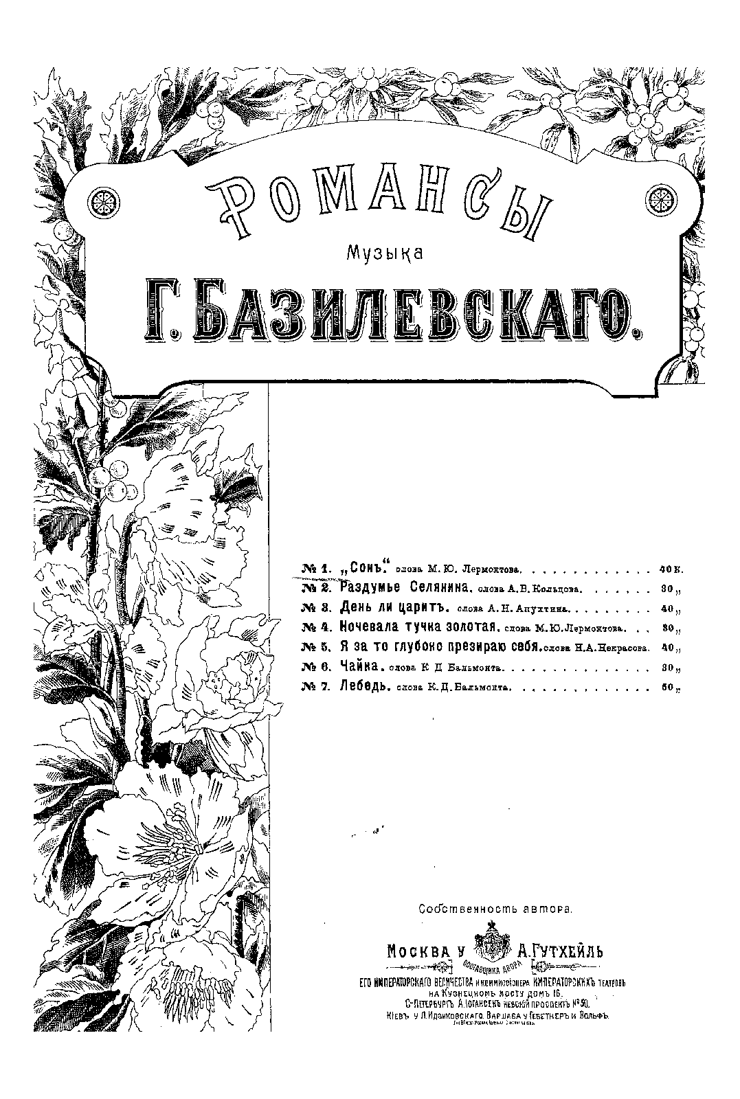 Moscow: Gutheil, 1905. Plate A. 8606 G.