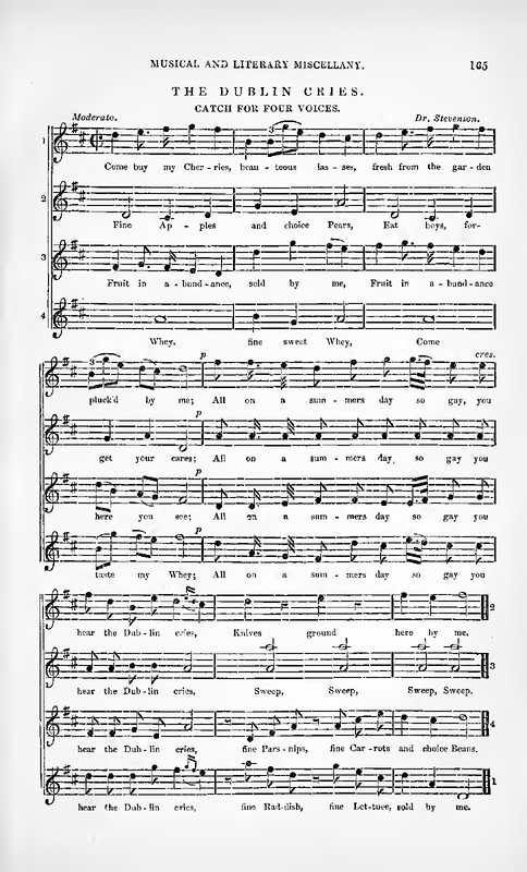| Alternative. Title | The Dublin Cries. Catch for 4 voices; Come buy my cherries |