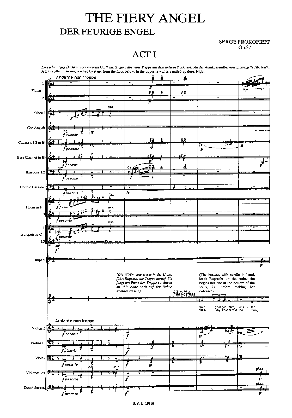 *Published in 1927 as vocal score with German text only by Gutheil, printed by Delanchy-Dupré. Edition prepared in advance of a cancelled Berlin premiere and used for rehearsal. Reportedly a reproduction of a copyist manuscript made of Prokofiev's original piano-vocal arrangement.