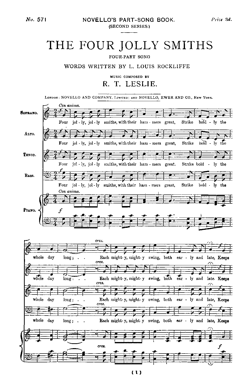 Here the composer's name is mistakenly given as R. T. Leslie; in other editions the attribution is correct.