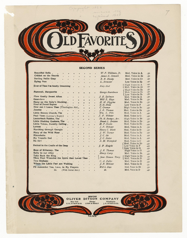| Genre Categories | Songs; For voice, mixed chorus, piano; For voices and chorus with keyboard; |