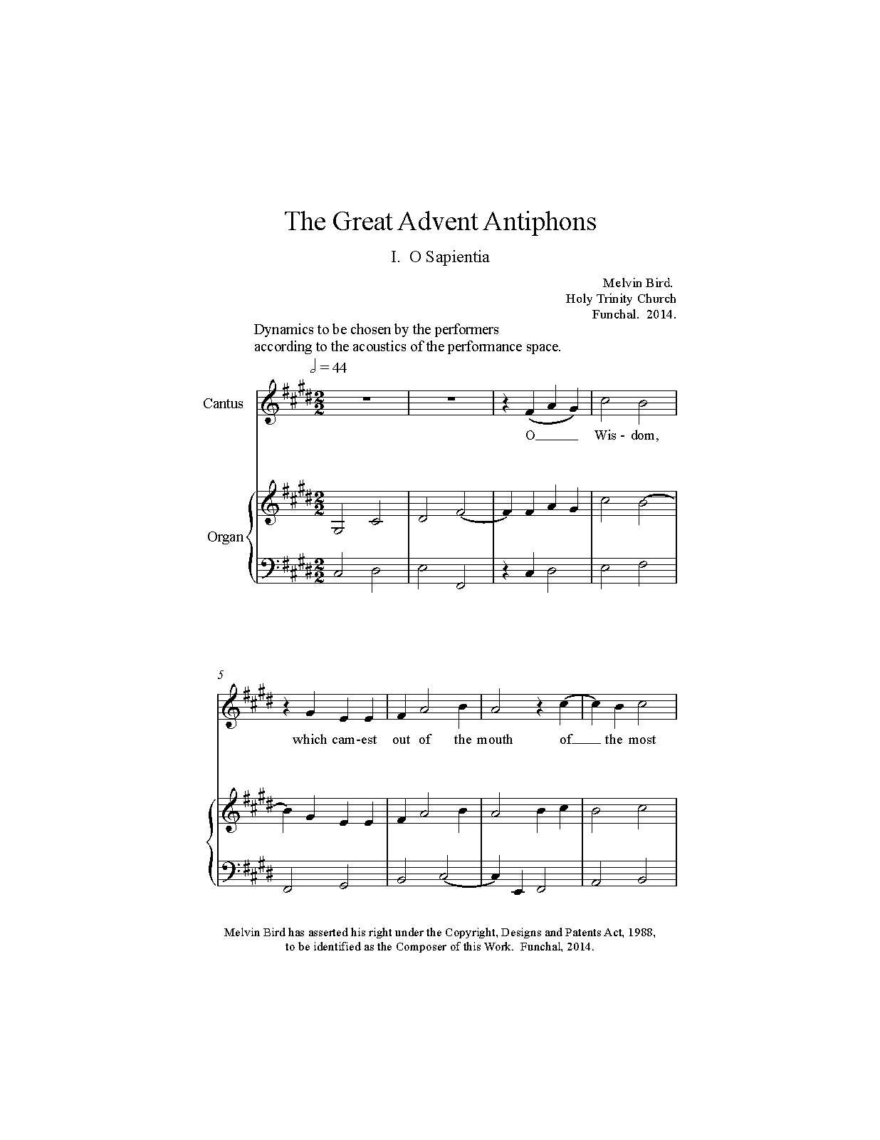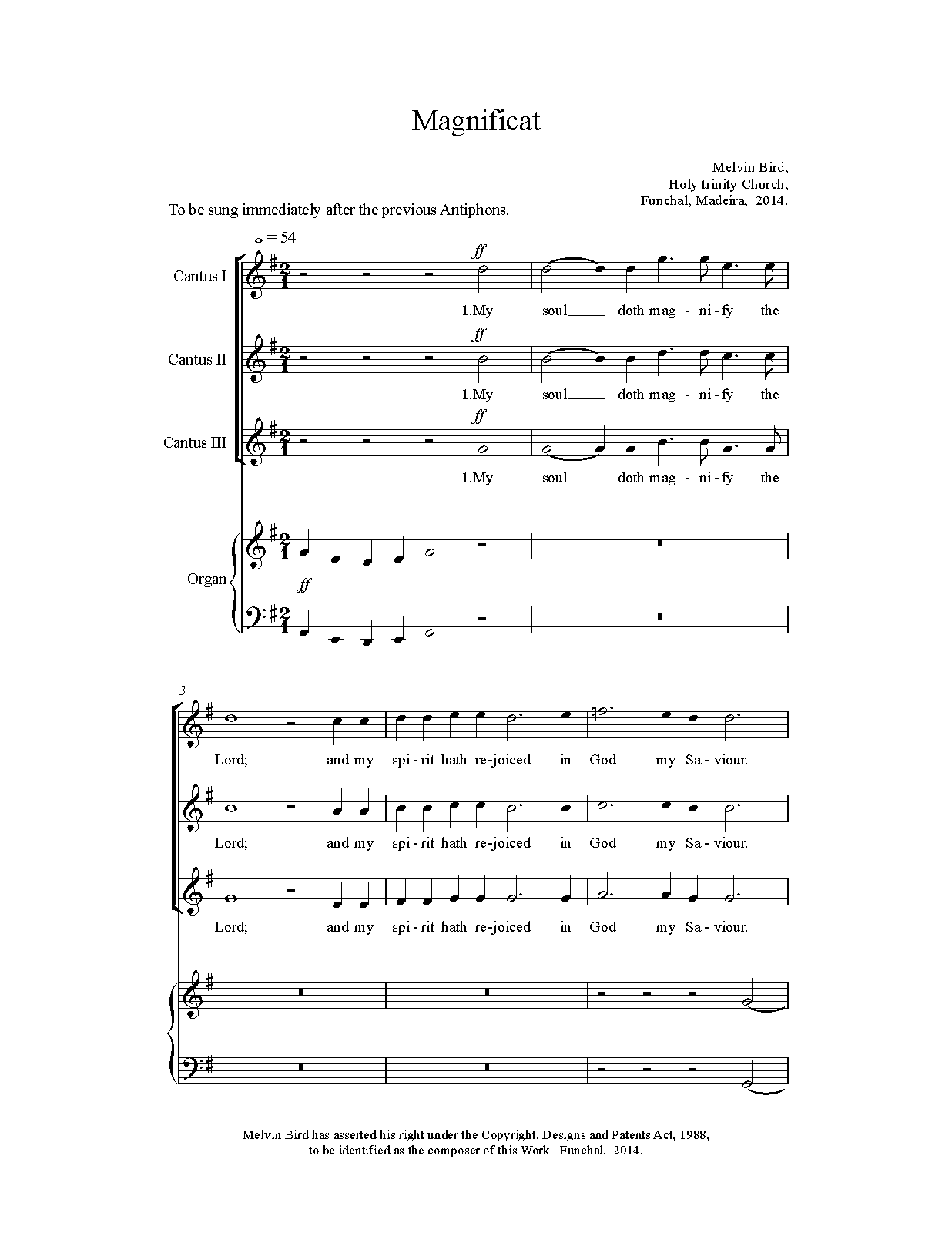 Melvin Bird has asserted his right under the Copyright, Designs and Patents Act, 1988, to be identified as the composer of this work. Please contact the composer for further information. The composer welcomes any performances and recordings. melvin.bird@hotmail.com. A clear and clean text.
