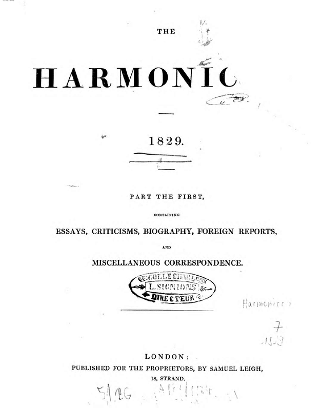 According to Wikipedia, the topics covered in The Harmonicon were "reviews of musical compositions, reviews of concert and opera performances, news of contemporary musicians and composers, features on music theory and the physics of sound, and biographical sketches of important musical figures."