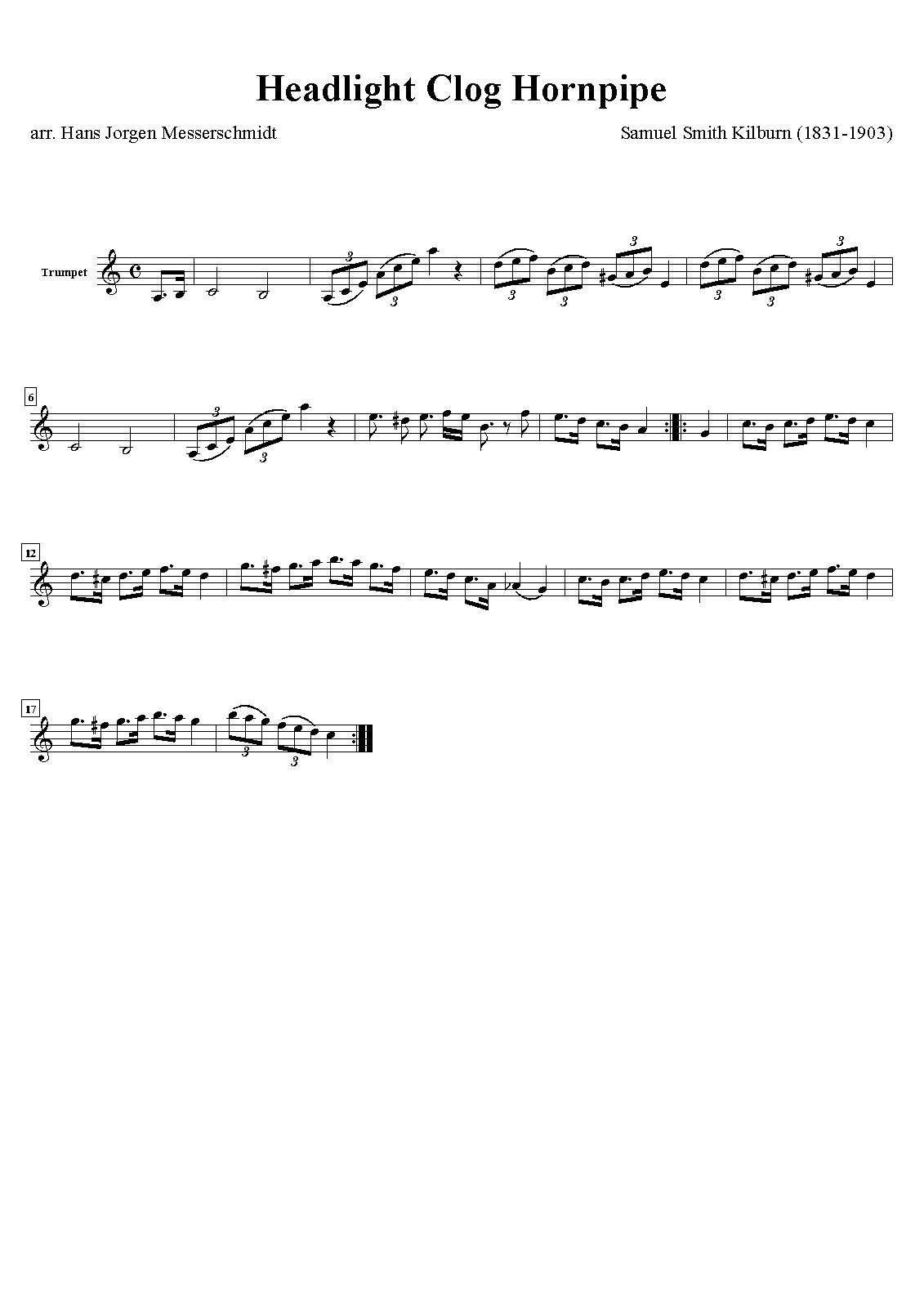 The uploader cites thesession.org, but according to them, they only classified it as a hornpipe because there was no category for clog dance. In the publication in which it is found (see below, Comments), it is classified as a jig. The main point is that it is not classified as a hornpipe in either source. The same sort of problem exists with the uploader's attribution to Samuel Kilburn. The cited source does not attribute it to Kilburn, and no evidence can be found anywhere else that Kilburn wrote it. In the source cited below, it is anonymous.