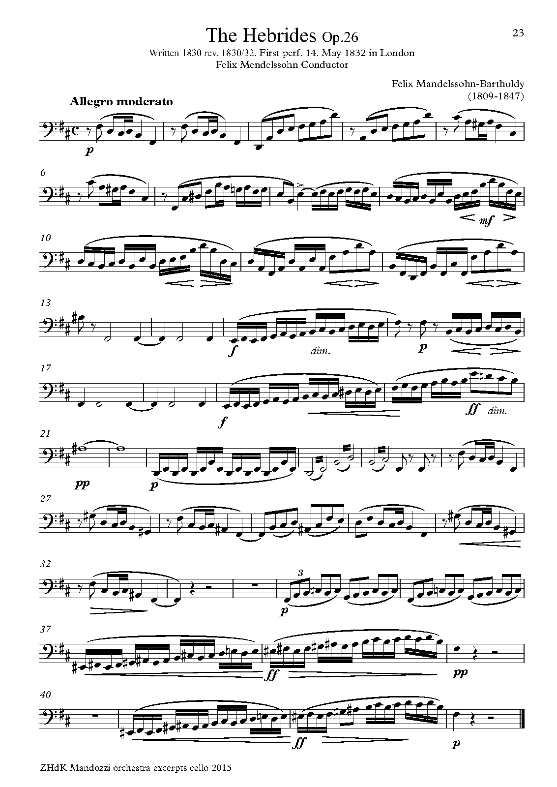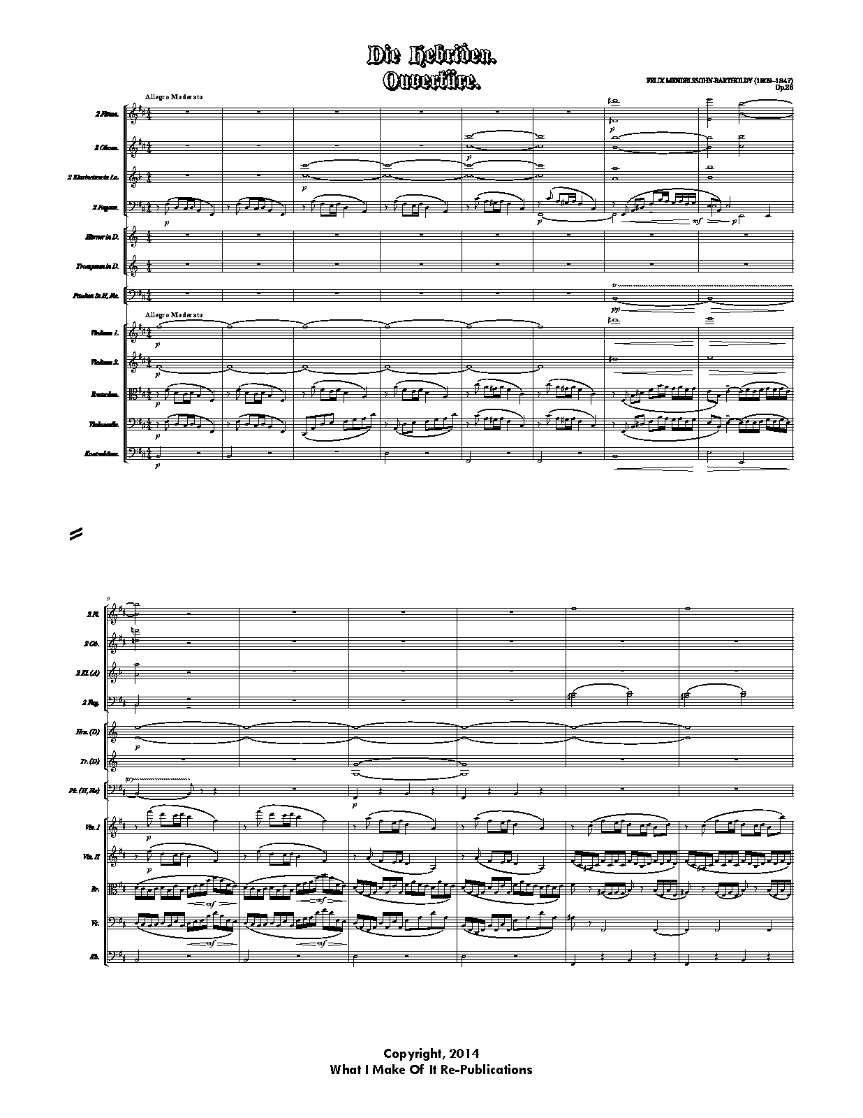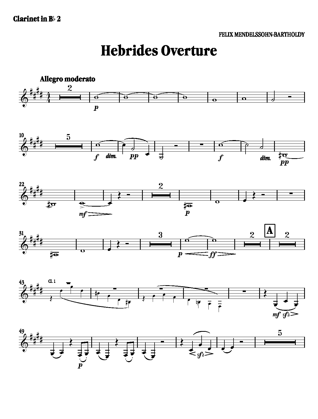 Misc. Notes "Overture to the Isles of Fingal". Copy of first revised version dated June 1832, Royal College of Music Library, London (GB-Lcm): MS 379. This score is complete apart from the Clarinet parts, which are entirely missing although the list of instruments on the first page of score includes them. It includes some substantial differences from the final 1833 revision.