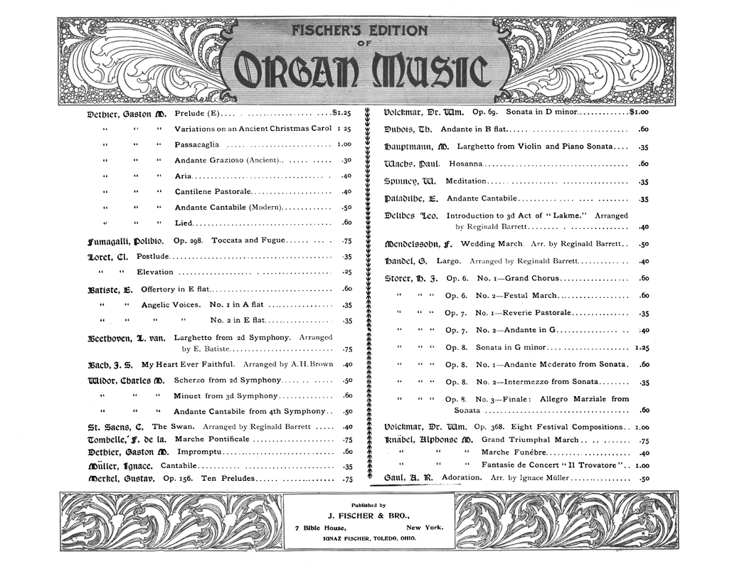 New York: J. Fischer & Brother, 1900. Plate J.F. & B. 1626-5.