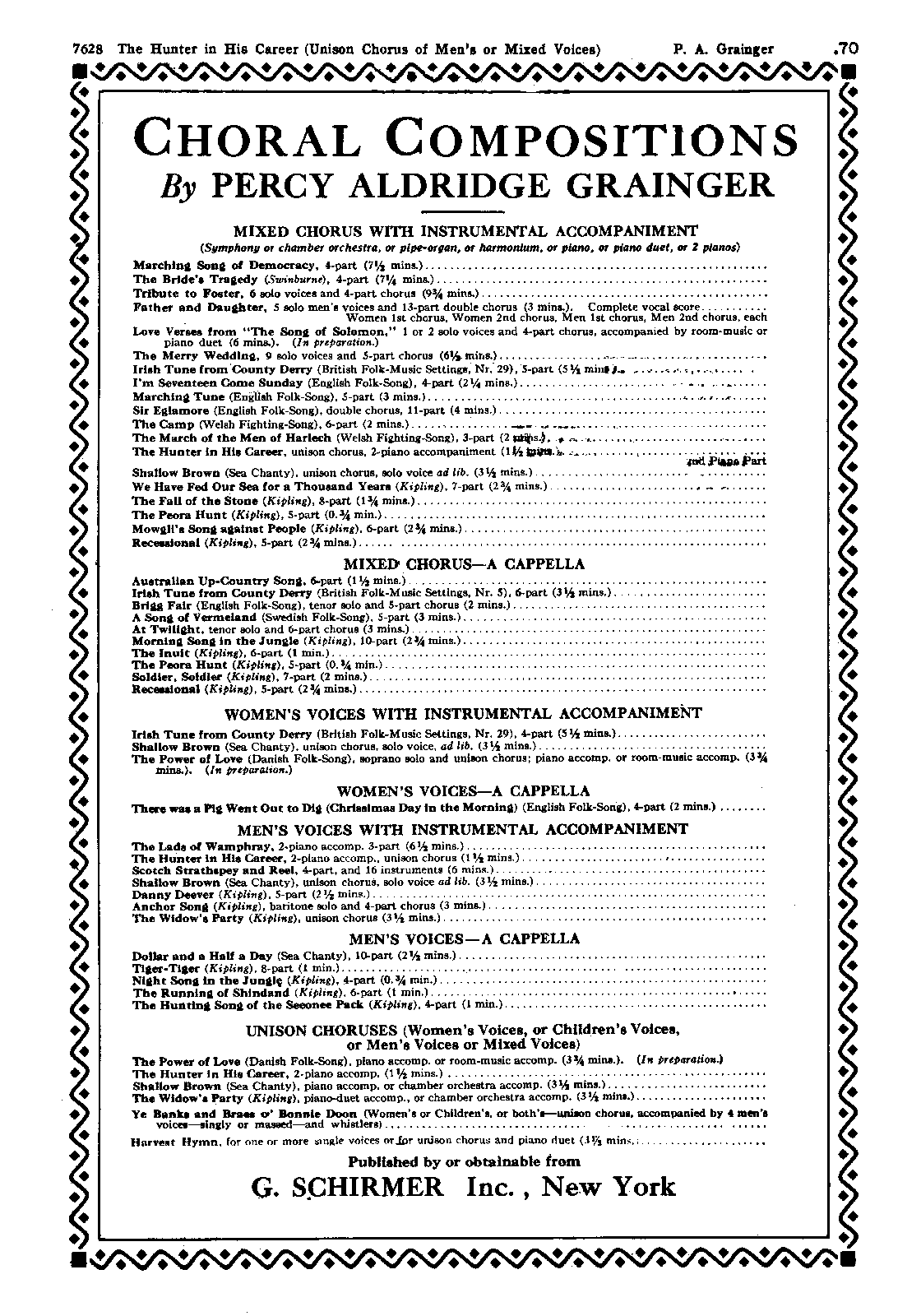 Percy Grainger Piano Album New York: G. Schirmer, Inc.