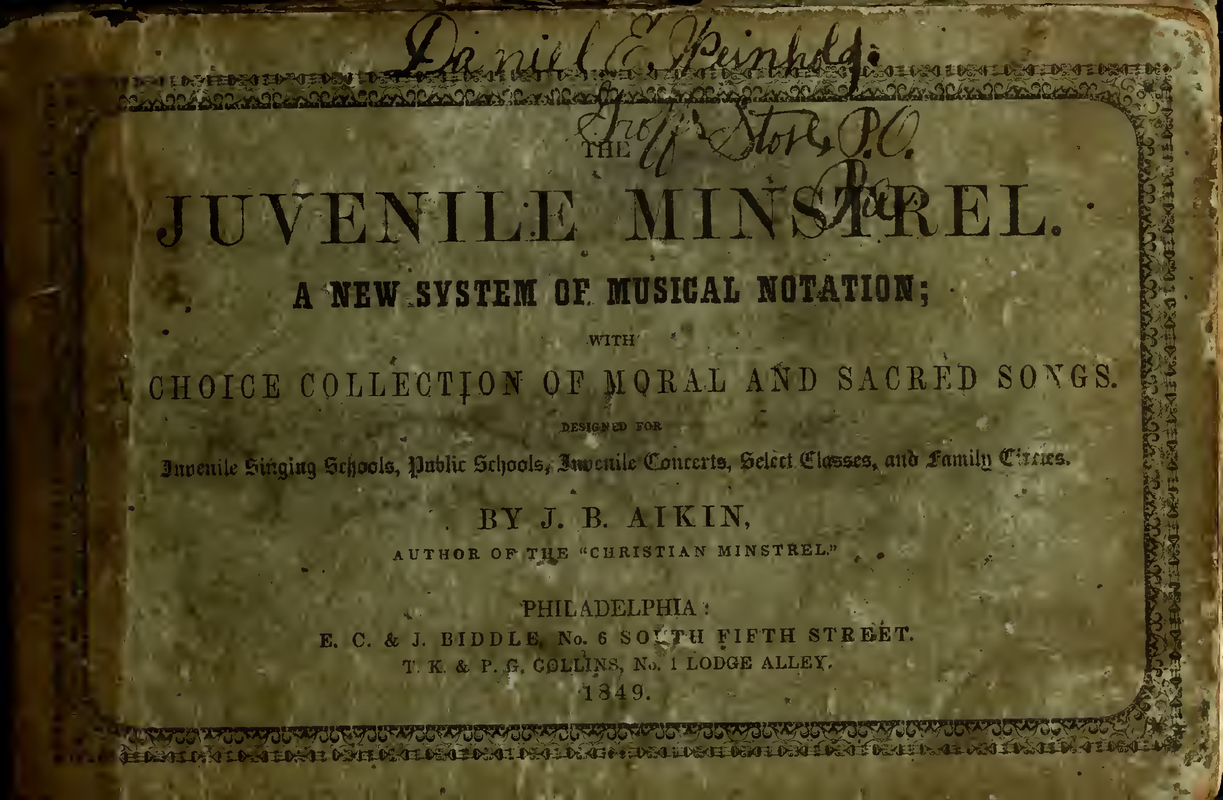 | Alternative. Title | The Juvenile Minstrel. A new system of musical notation; with a choice collection of moral and sacred songs. Designed for Juvenile Singing Schools, Public Schools, Juvenile Concerts, Select Classes, and Family Circles. By J. B. Aikin, author of the "Christian Minstrel." |
