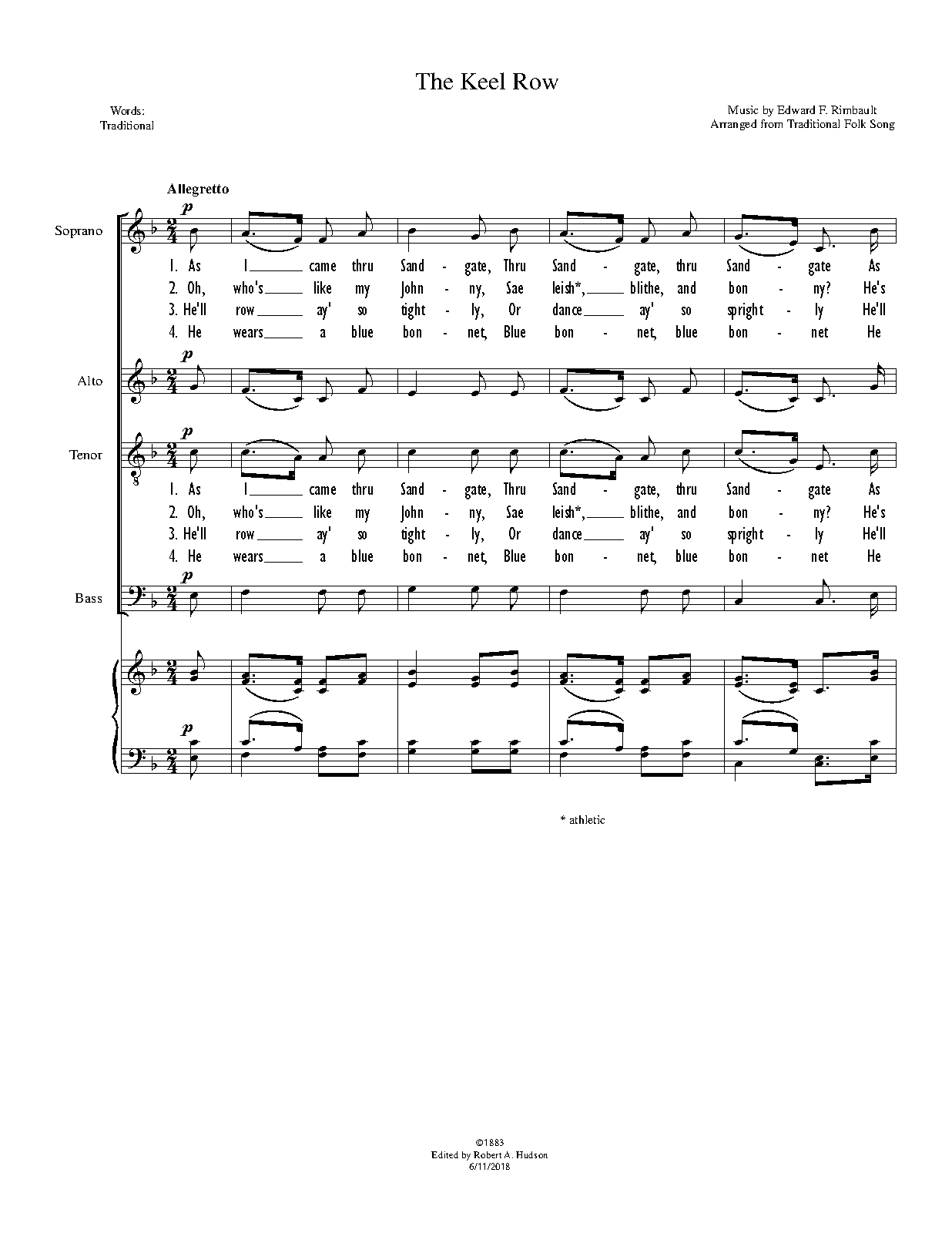 | Instrumentation | 4 voices (SATB), piano (arranged) |