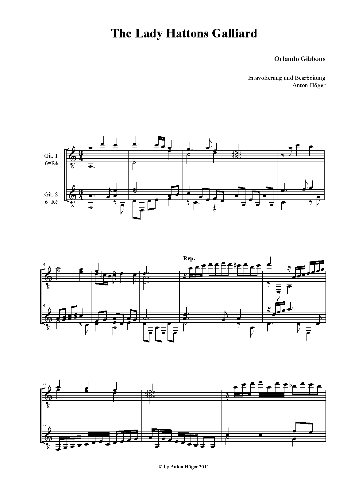 Intavbulation in french Lute-tablature for 2 lutes (Unisono). If performed I would look forward about a small reference to my efforts.