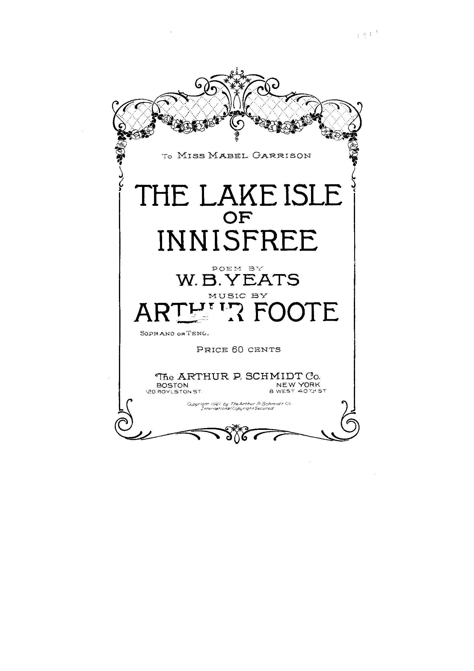 | First Publication | 1921 – Boston: Arthur P. Schmidt |