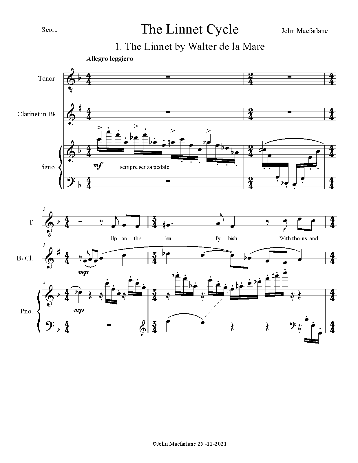 1. The Linnet - Clarinet (B♭), Bass Clarinet (B♭)