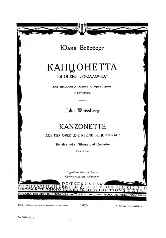 Moscow: Muzgiz, 1926. Plate M. 7074 Г.