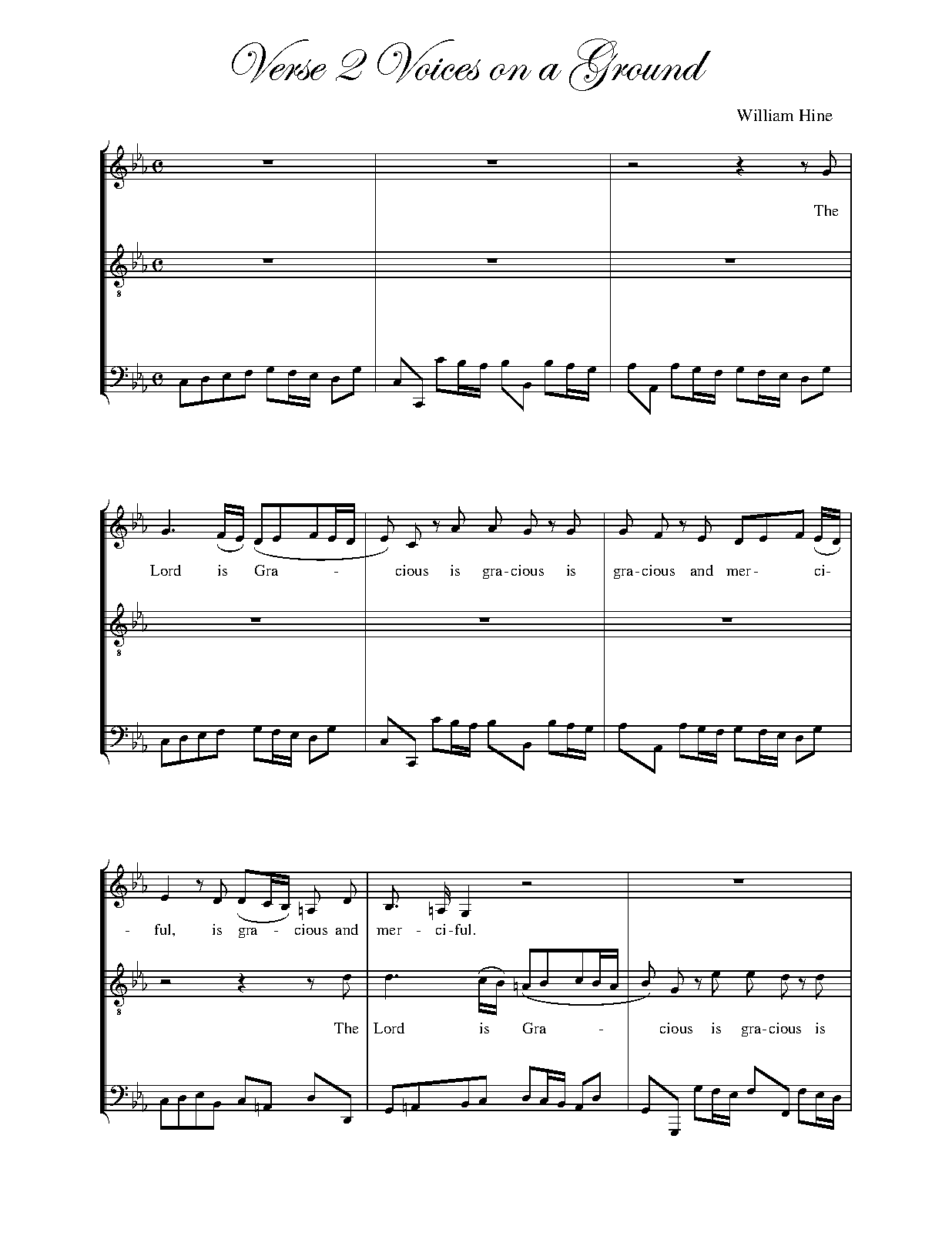 From Hine's posthumous publication, Harmonia Sacra Glocestriensis, or Select Anthems for 1,2 & 3 Voices and A Te-Deum and Jubilate Together with A Voluntary for the Organ, composed by William Hine, late Organist of the Cathedral Church at Glocester.