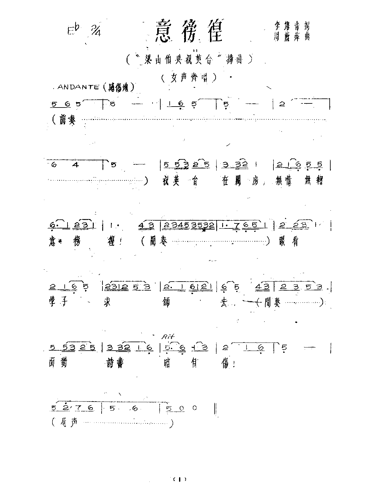 | Extra Information | Based on a folk story, the same as to the Butterfly Lovers Violin Concerto. Sung in Lower Yangtze Mandarin. |
