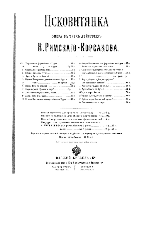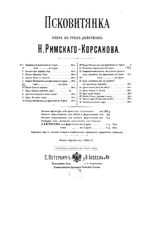 Wikipedia article The Maid of Pskov - Scores at Sheet Music Plus