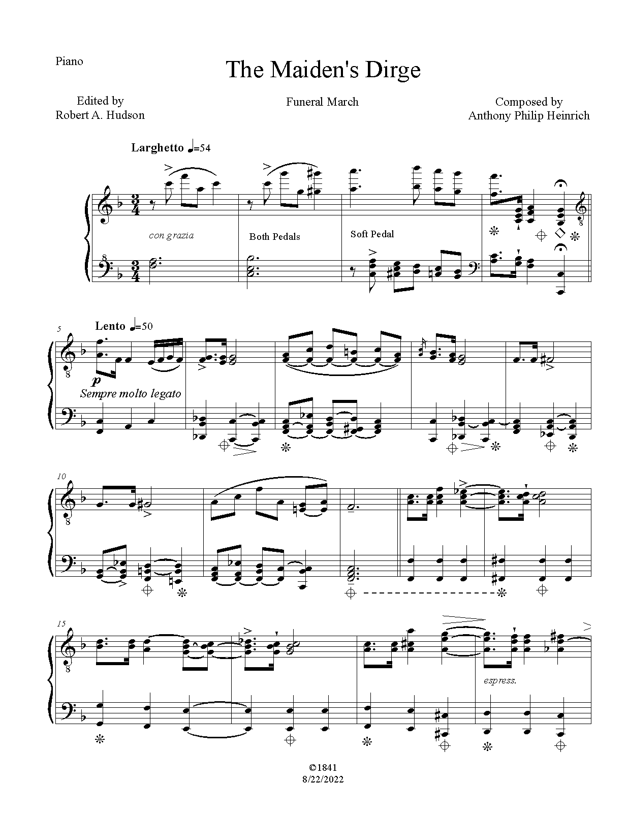 | Alternative. Title | A Lament composed for the Piano Forte. Marcia Funebre |