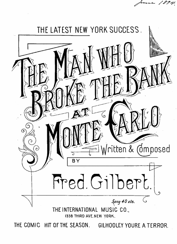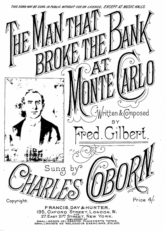 A famous music-hall song, based on Charles Wells, a famous gambler who broke the Monte Carlo's cash registers six times in three days, and walked away with £6 million in today's money. Stable act of Charles Coborn, who could sing in multiple languages, and reckoned he sung it one hundred thousand times in his career.