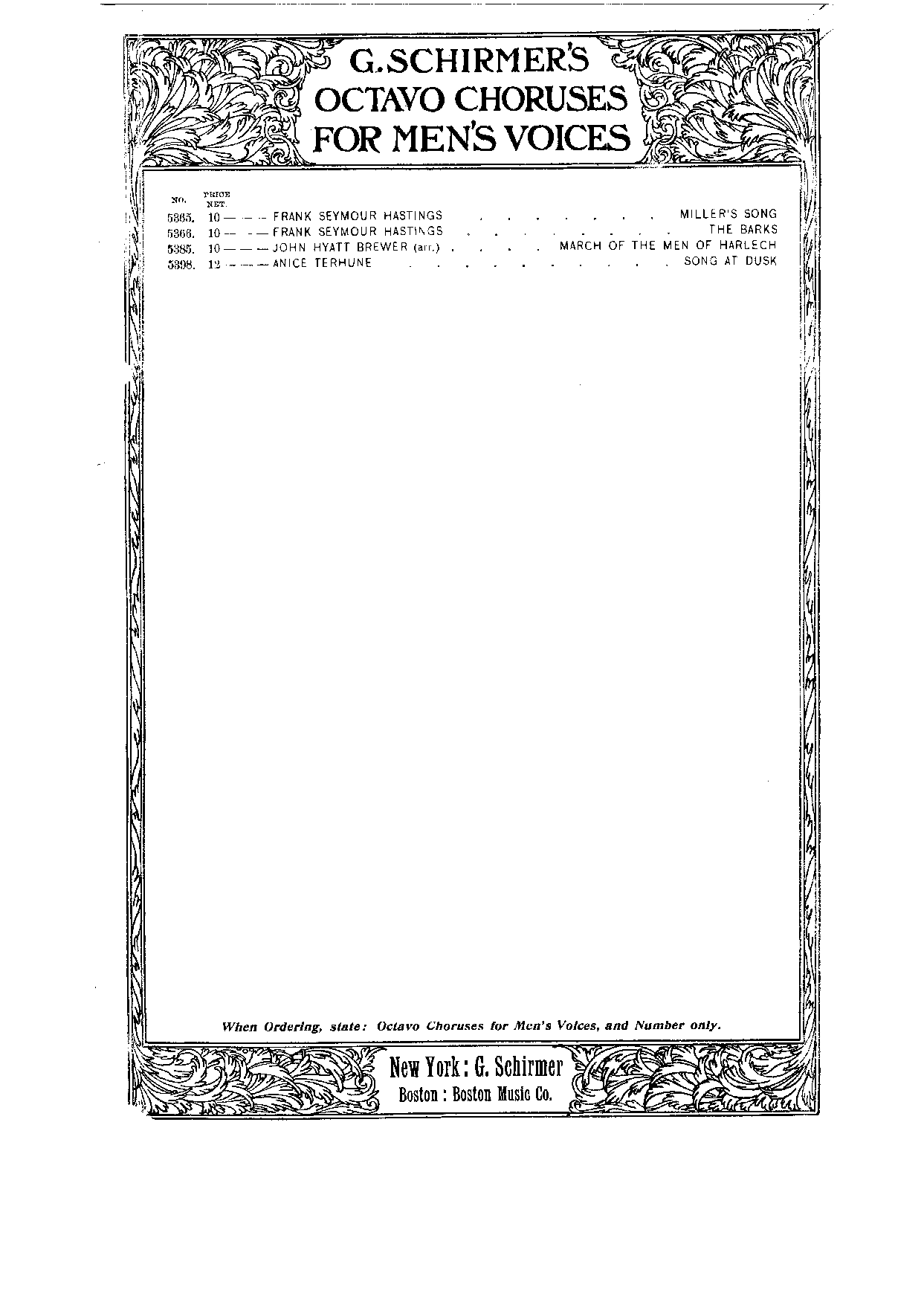 | Genre Categories | Folksongs; Songs; For male chorus, piano (arr); |
