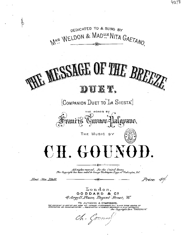 Dedicated to and Sung by Mrs. Weldon and Mlle. Nita Gaetano.